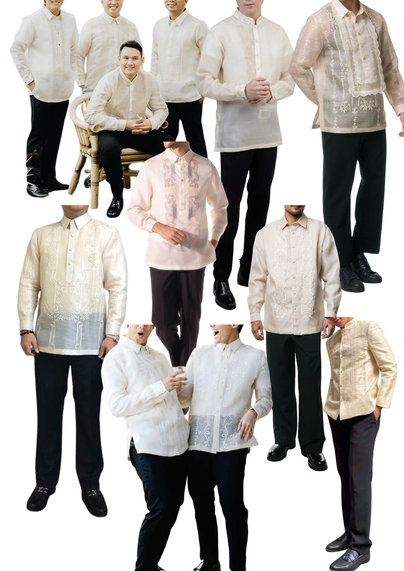 Para sa aming mga Ninong, mangyaring magsuot ng Barong Tagalog at itim na pantalon.