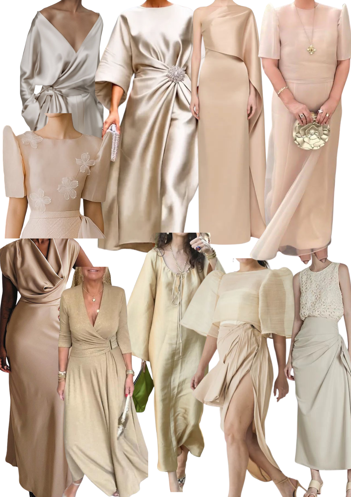 Para sa aming mga Ninang, damit na kulay beige, ecru, champagne, o iba pang kulay na kaparehas nito. Hindi na kailangang long gown dahil sapat na po ang cocktail or midi dress.